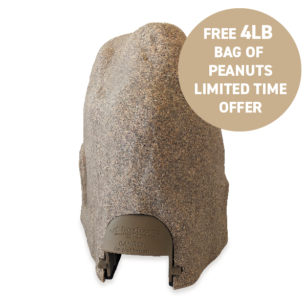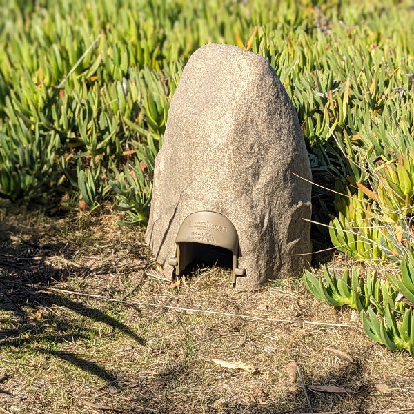 California Ground Squirrels are much more likely to approach the trap that mimics the natural environment they are used to, the design encourages tunneling into the trap, while the appearance of a rock does not alarm the notoriously timid pests.